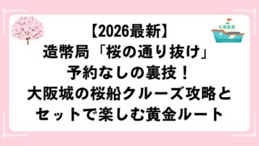 「2026年の大阪・造幣局の桜の通り抜けの予約について知りたい!」「今年の大阪・造幣局の桜の通り抜けの予約は取れなかったけど、桜を倒しむ方法はある?」「2026年の大阪城の桜船クルーズについて確認したい!」このように、2026年の大阪・造幣...