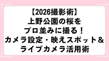 「2026年は上野公園の桜を綺麗に撮りたい!」「桜をプロ並みに撮る設定方法や映えスポットを知りたい!」「上野公園の桜を見頃で混雑の少ない時に撮影したいので、ライブカメラがあったら見たい!」このように、2026年は上野公園の桜を上手に撮りたい...