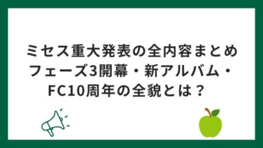 「ミセスの重大発表の内容を知りたい」「ミセスの大切なお知らせの内容を詳しく知りたい」「ミセスはフェーズ3に移行するみたいだけど、本当に活動休止はしないか気になる」こんな風にミセスの重大発表の内容の詳細を知りたい方は少なくないかもしれません。...