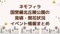 園内では昨年「ネモフィラまつり」が開催され、フォトスポットや限定グルメが多くの来園者に好評でした。今年も同様のイベントが行われる可能性が高く、開花と合わせて春の絶景を楽しめます。