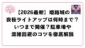 夜21時までのライトアップに合わせて夜店も営業しますが、人気メニューの完売を避けるために20時までの購入を意識し、現金やゴミ袋などの必須アイテムを準備しておくことで、混雑の中でもストレスなく過ごせます。
