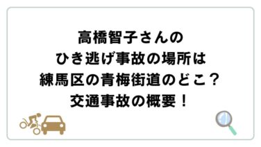 「女優の高橋智子さんのひき逃げ事故があった場所は練馬区の青梅街道のどこ?」「高橋智子さんの交通事故の概要を知りたい!」「高橋智子さんのひき逃げ事故はショックだった!」このように高橋智子(たかはし ともこ)さんのひき逃げ事故について、詳しく知...