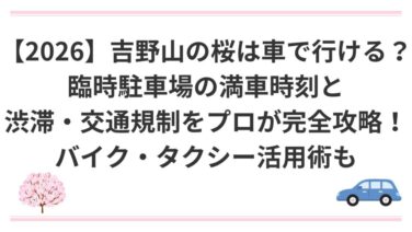 「2026年の吉野山の桜は車やタクシーで行ける?」「今年の吉野山の桜シーズンの臨時駐車場の満車時刻と渋滞・交通規制を知りたい!」「今年は吉野山の桜をバイクでツーリングしながら見ようと思うが、注意点はある?」このように、2026年の吉野山の桜...